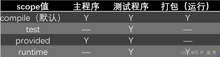 依赖的jar包,默认情况下,可以在任何地方使用。可以通过<scope>...</scope>设置其作用范围
