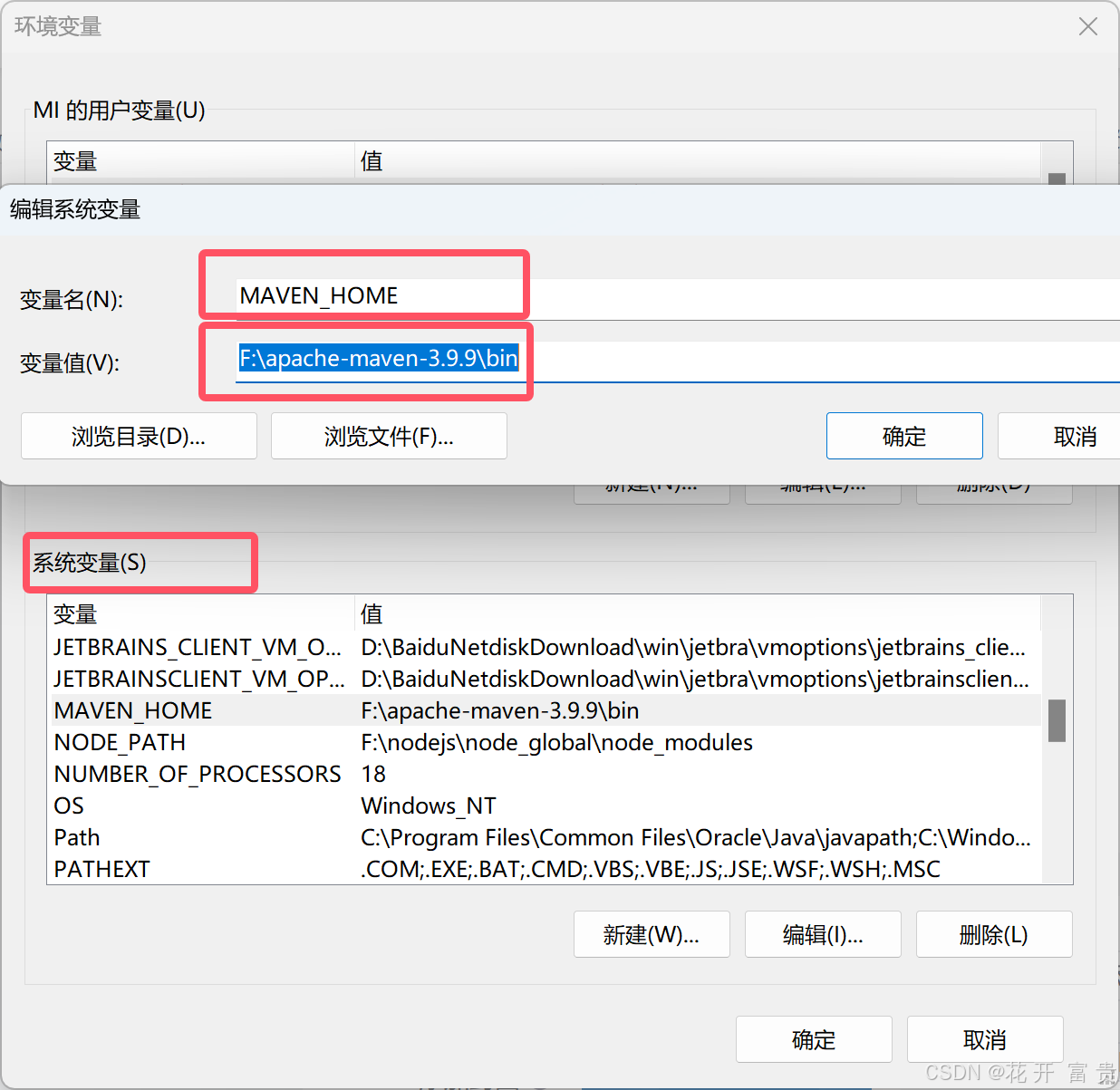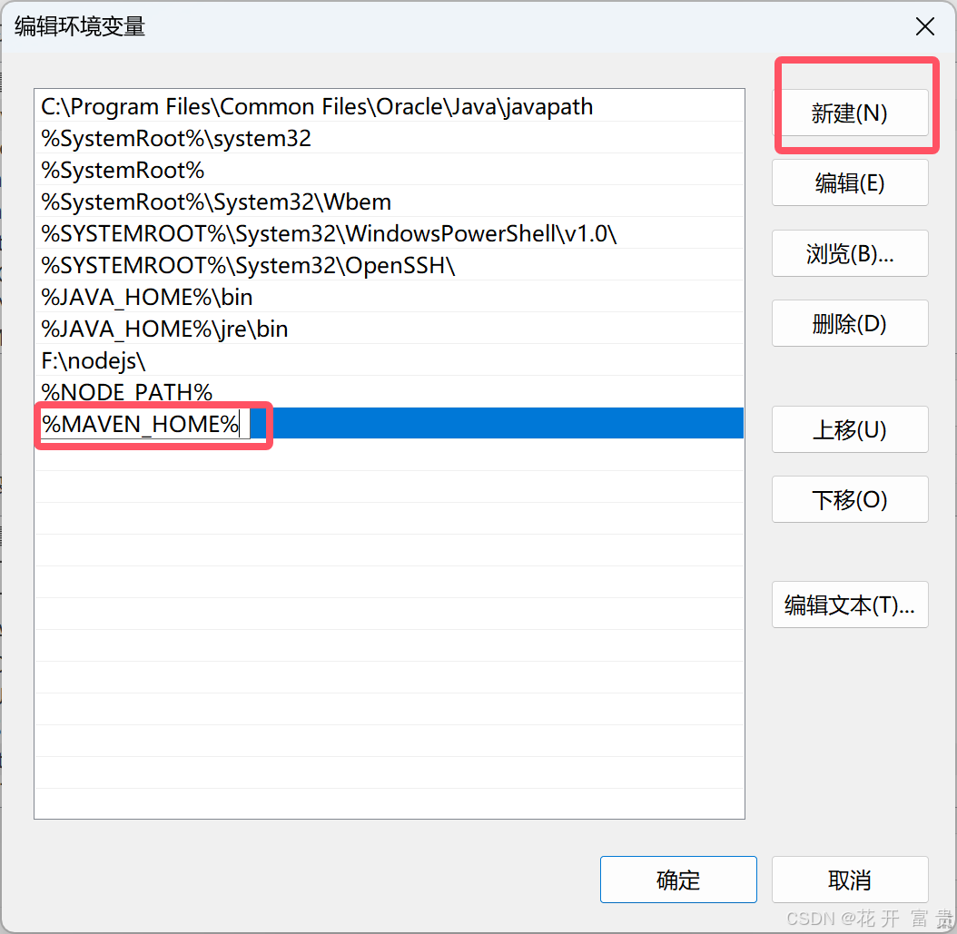 在系统变量中新建一个MAVEN_HOME,添加Maven的路径