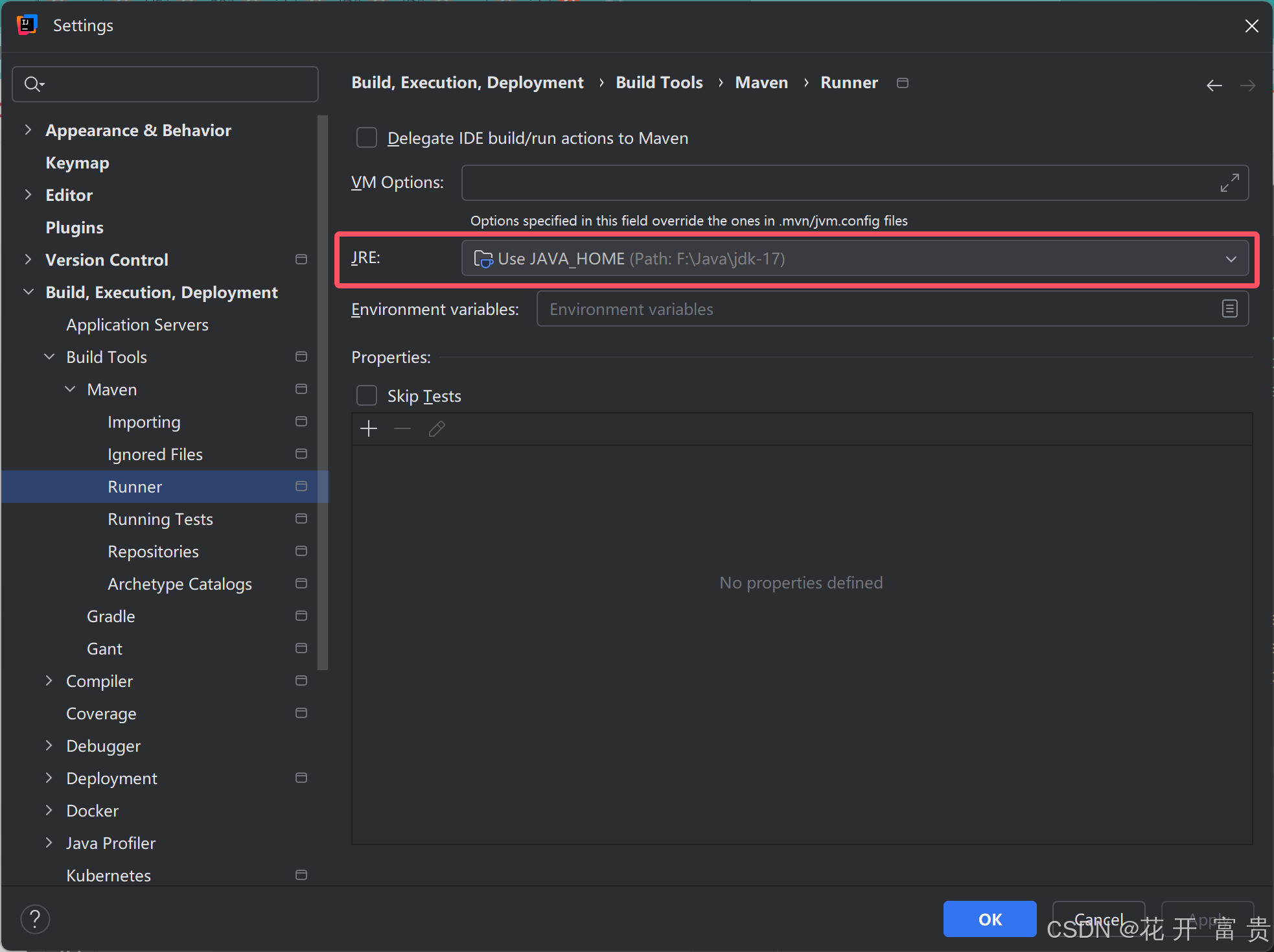 注意修改Maven下的Runner中的JRE版本为现有JRE版本
