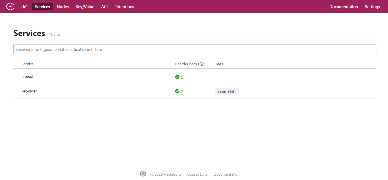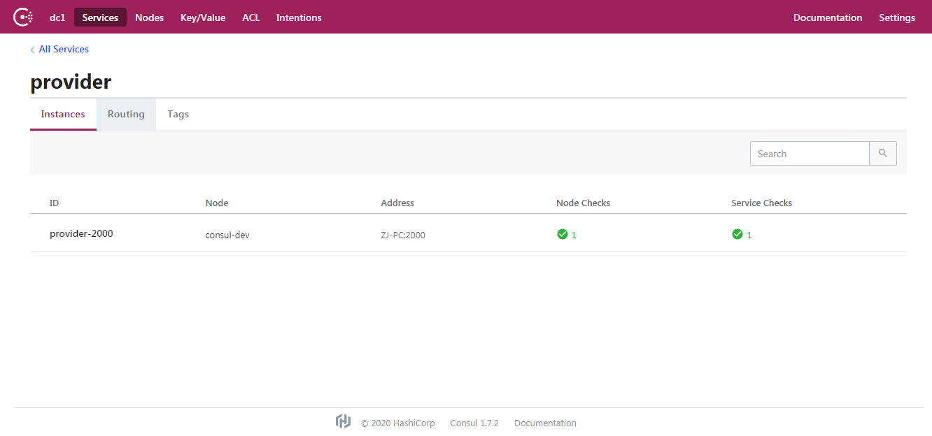 接下来,启动项目,访问 http://127.0.0.1:8500 可以看到 provider 的注册信息。