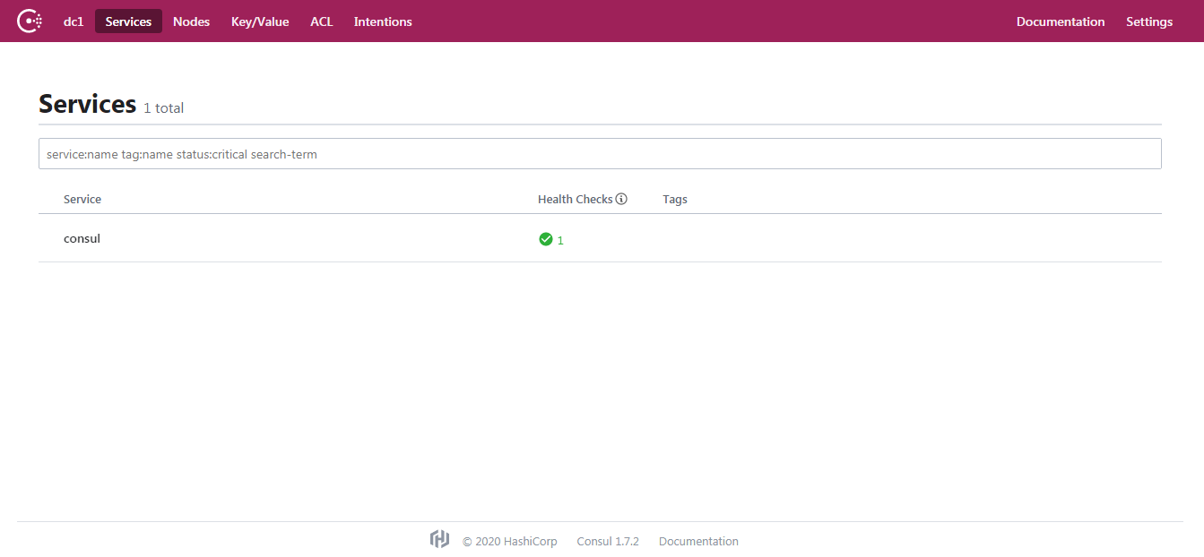 启动成功后,通过 http://127.0.0.1:8500 访问 Consul 的后台管理页面,如下: