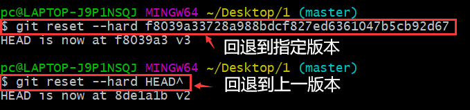 1、回退到上一个版本 git reset --hard HEAD^,回退到上上一个版本 git reset --hard HEAD^^
