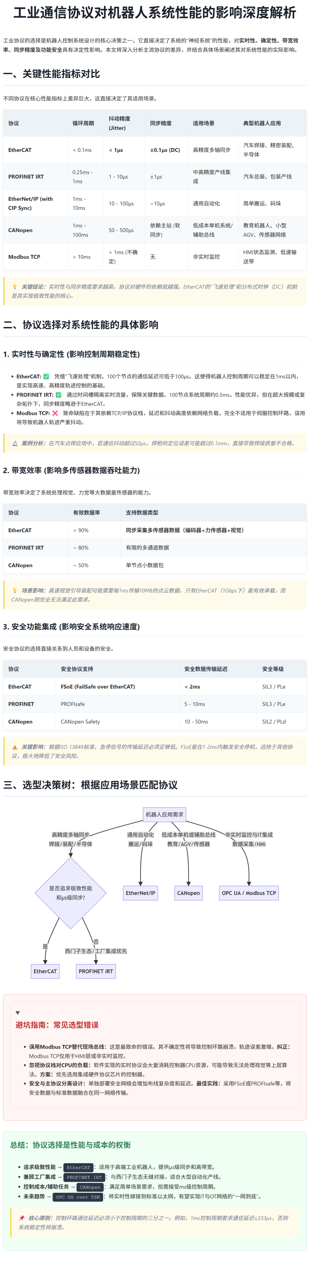 让我为你详细解析工业通信协议对机器人控制系统性能的深远影响。这个问题触及了现代工业自动化的核心技术选择。