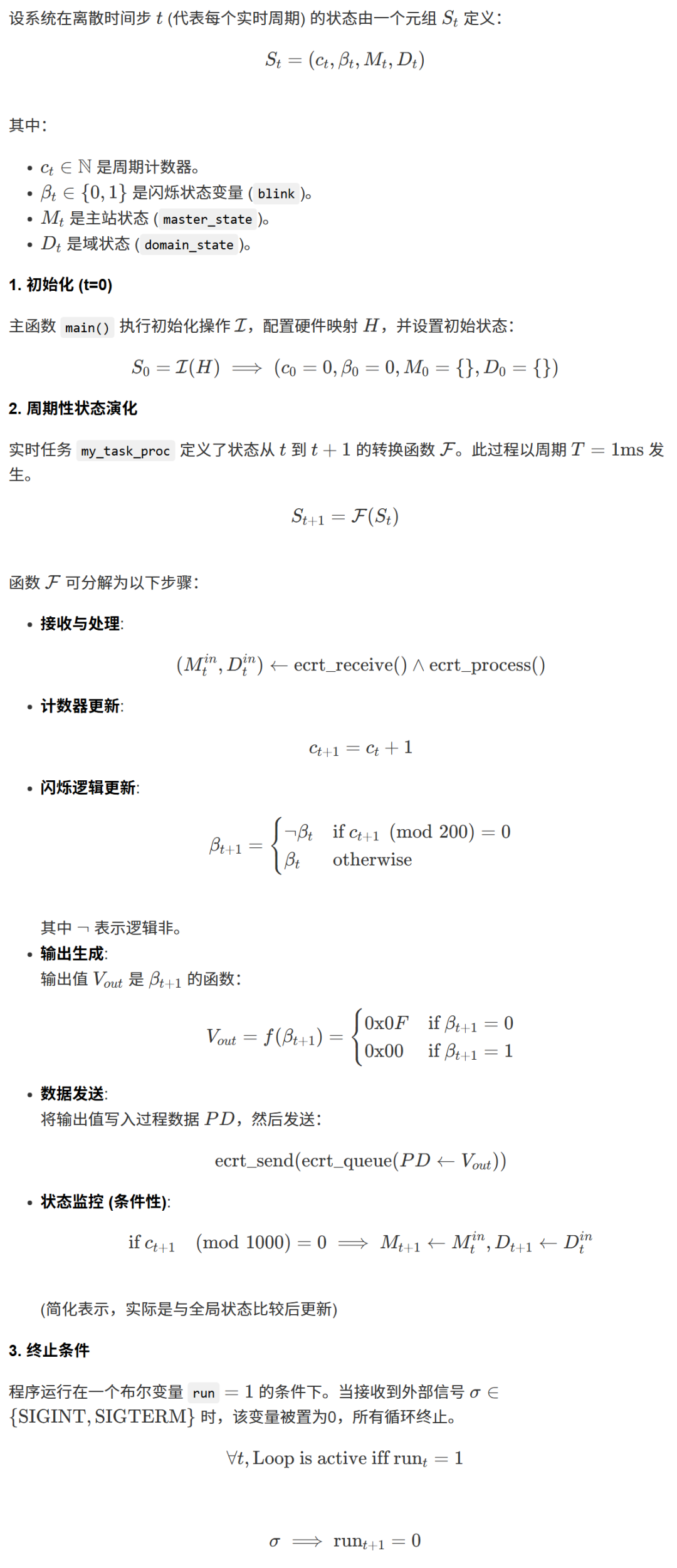 总而言之,这是一个教科书式的 EtherCAT 硬实时控制示例,展示了从硬件配置、实时任务创建到周期性数据交换和应用逻辑实现的完整过程。