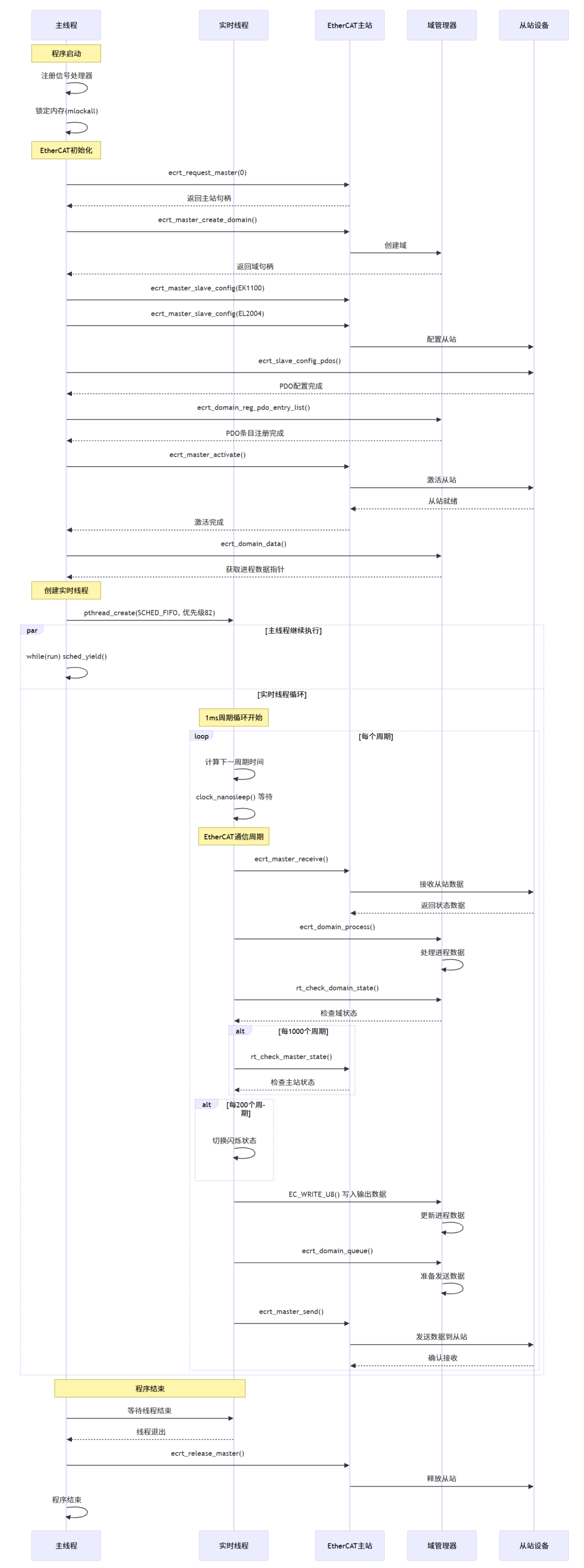 这个程序是一个典型的工业自动化实时控制系统,使用EtherCAT协议实现高精度的设备控制。