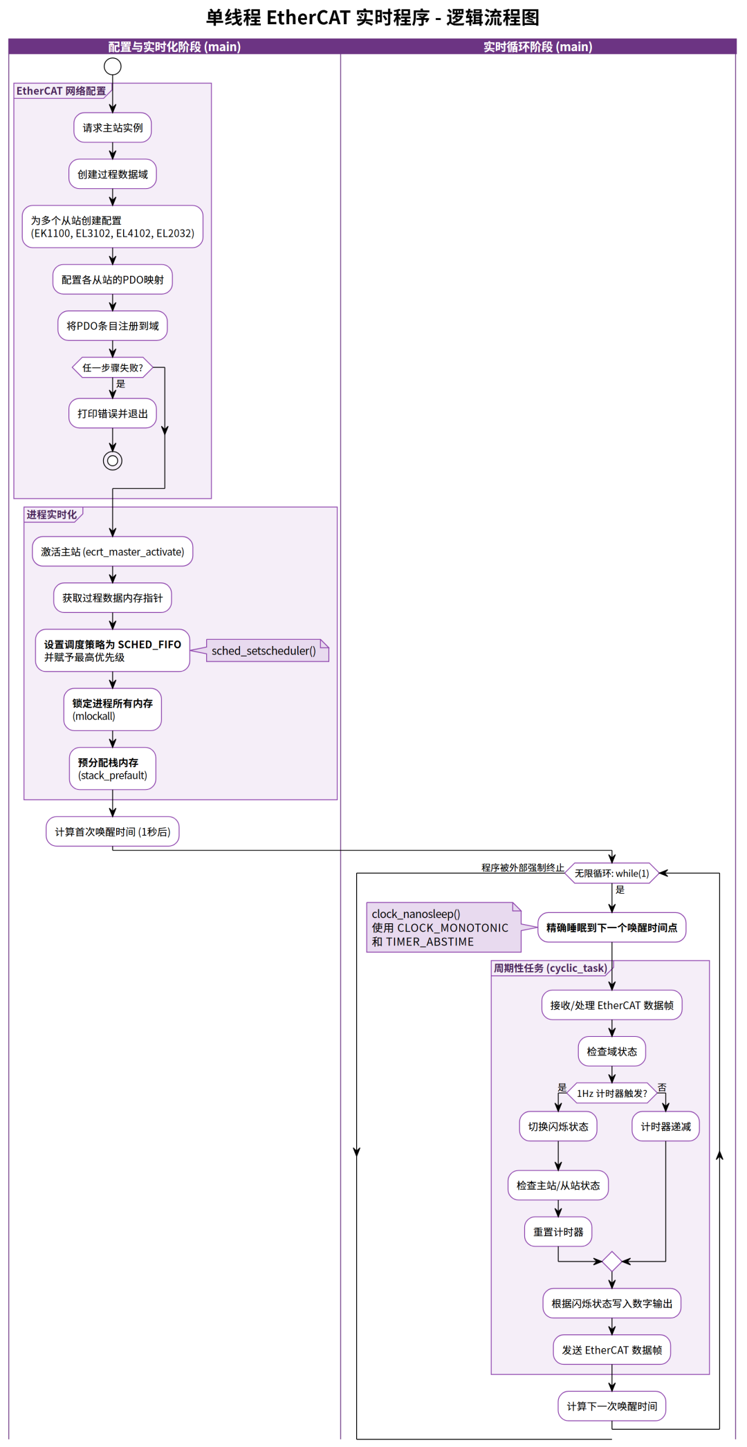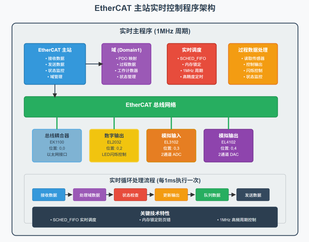 这个程序是一个典型的EtherCAT实时控制应用,具有高精度定时、确定性通信和实时数据处理能力。