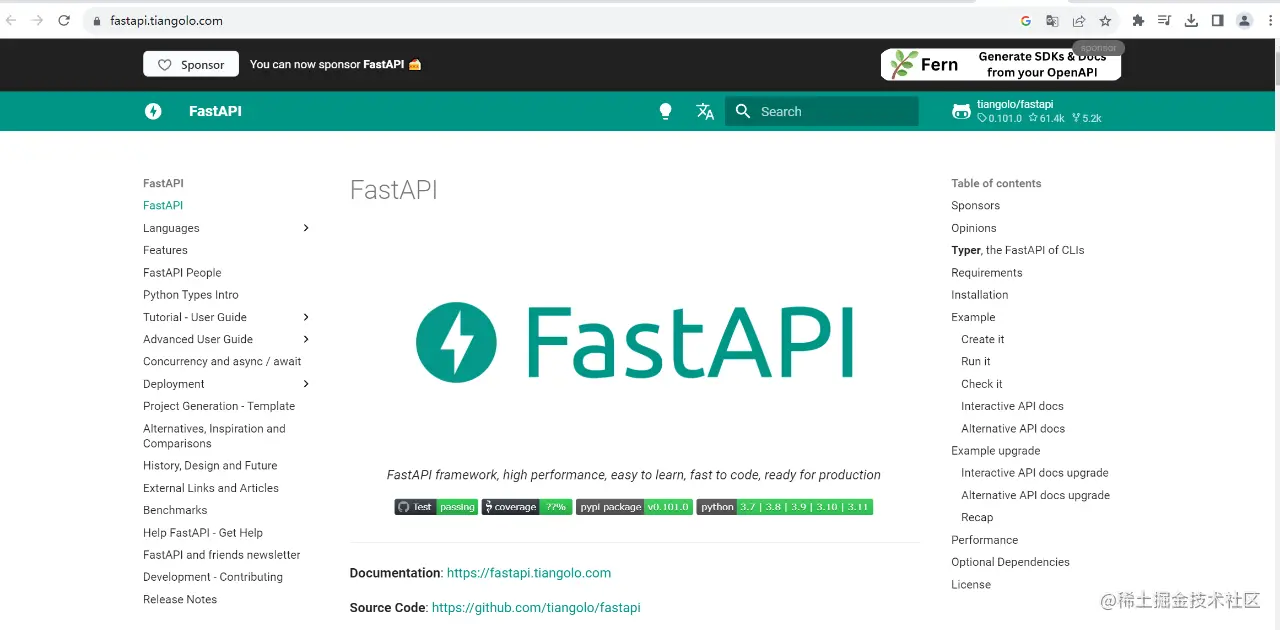 尤其是 FastAPI,是用于构建 Web API 的现代、开源、快速、高性能的 Web 框架,它基于Python 3.6+ 标准类型提示,支持异步,正如它的名字,FastAPI 就是为构建快速的 API 而生。