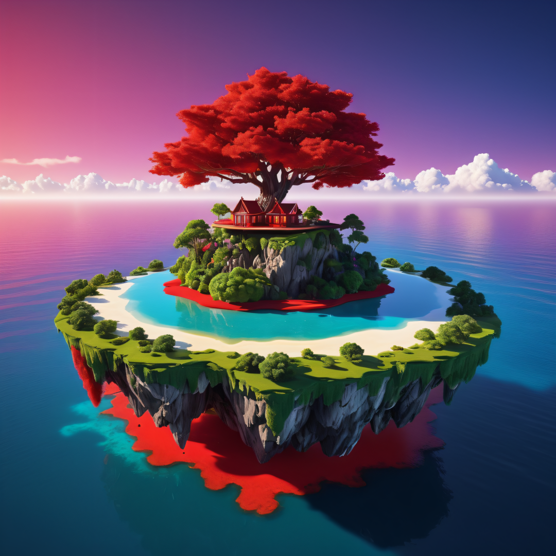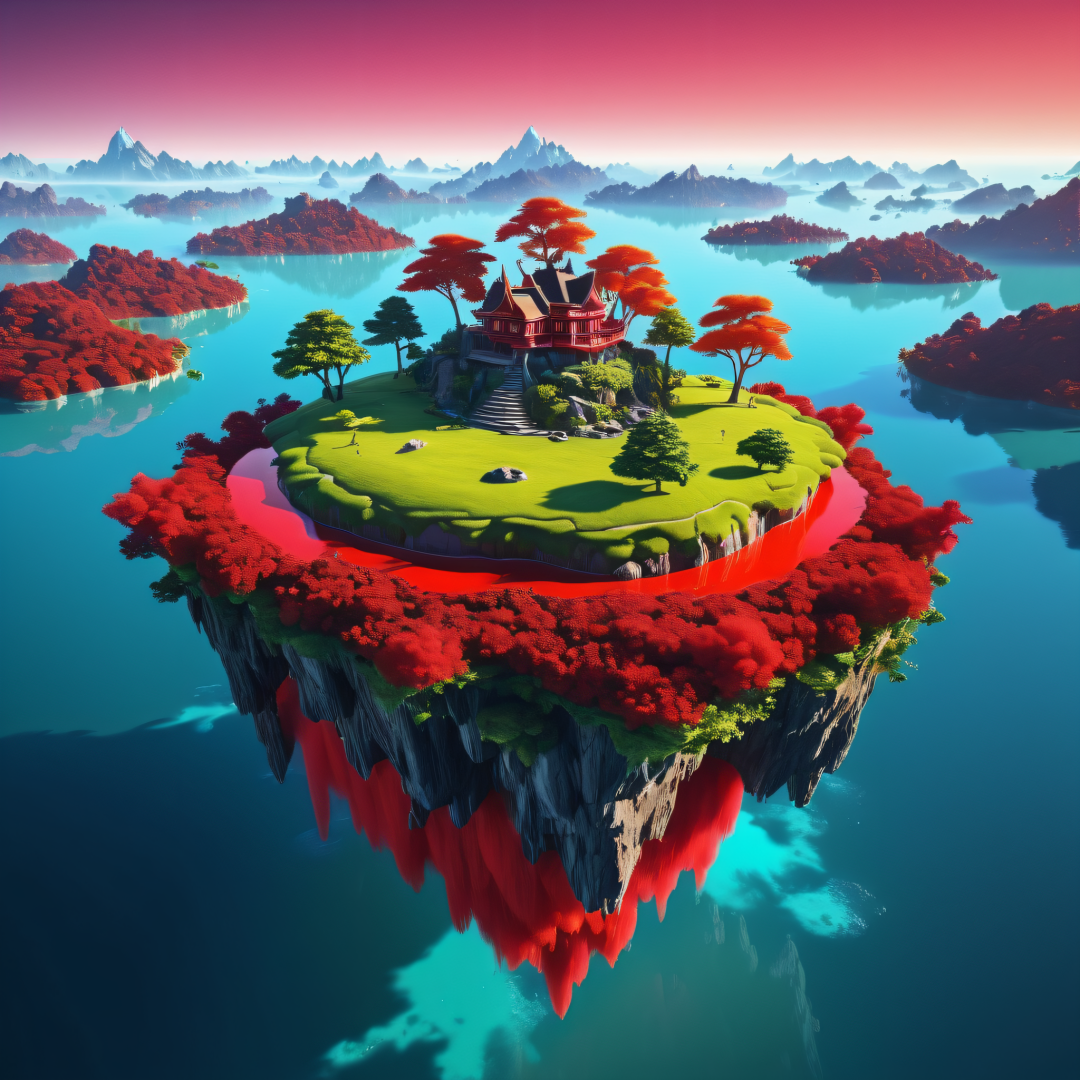 floating island, vibrant red, 8K, colorful colors,