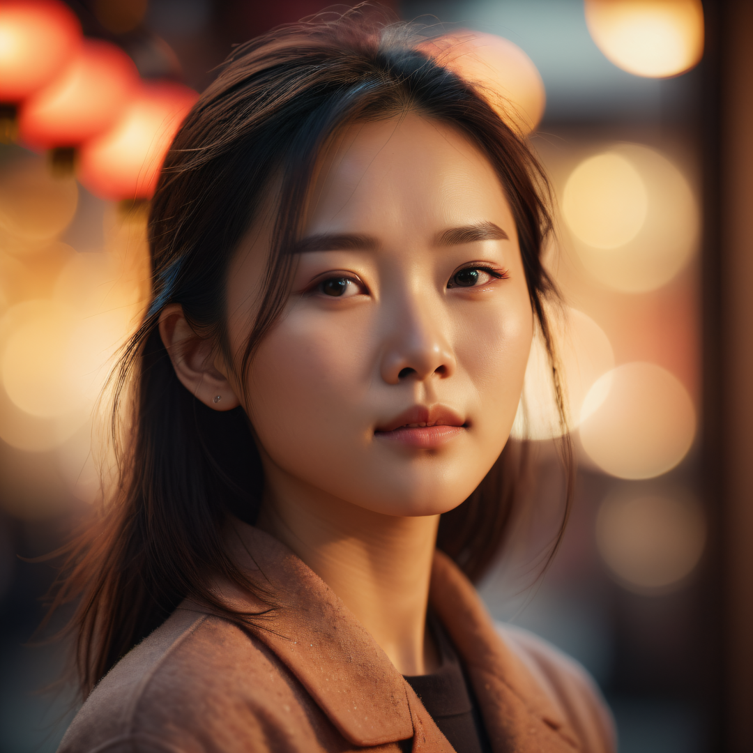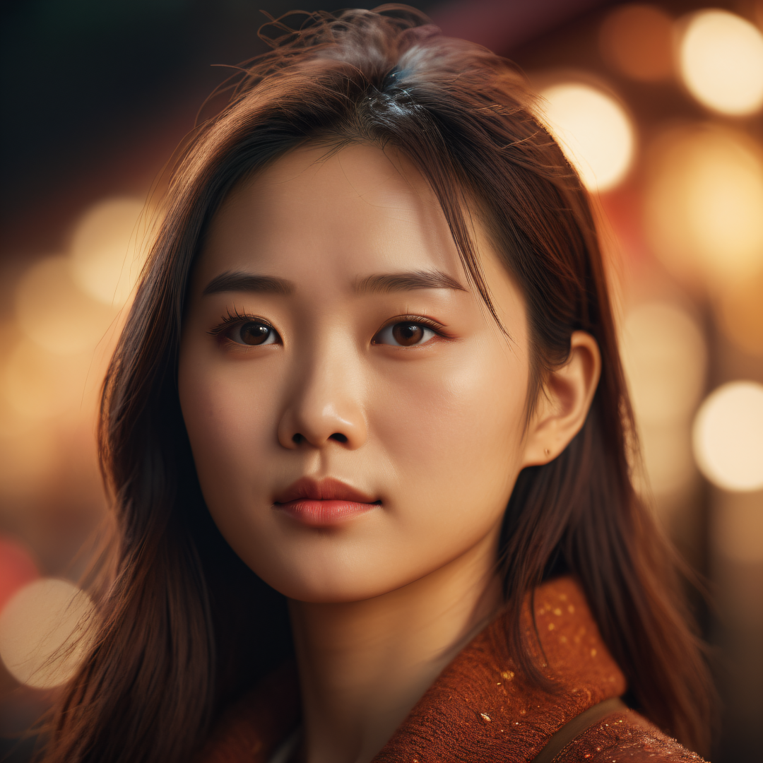 8k photograph,cinematic,cinestill,bokeh,attractive chinese female,depth of field 270mm,warm colors,tranquil,accent lighting,