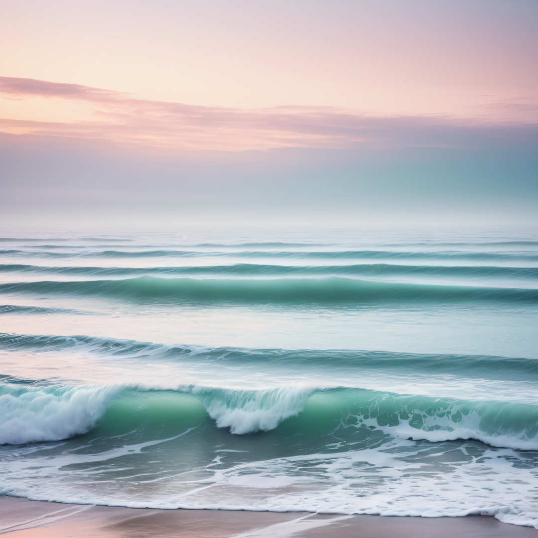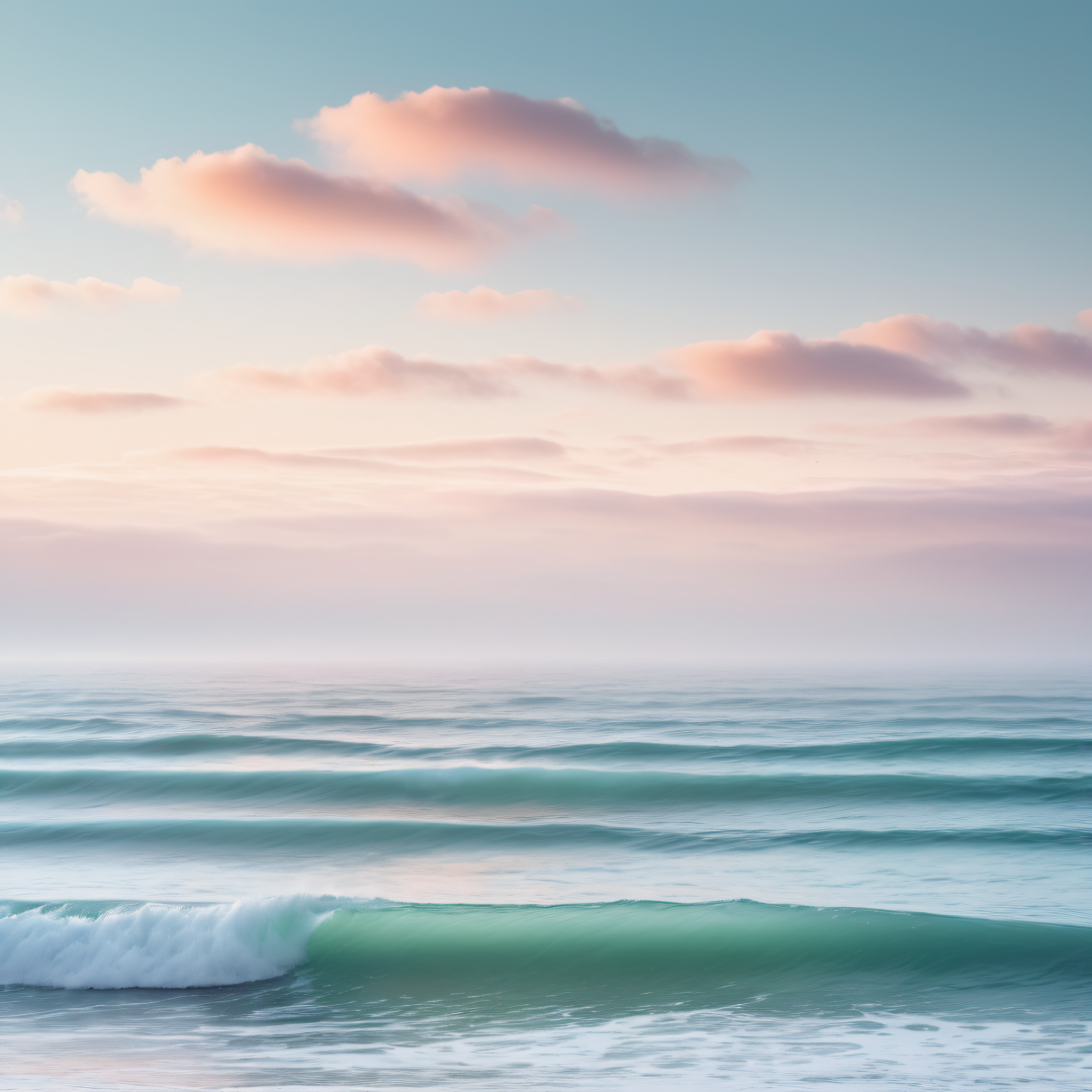 (wallpaper fusion:1.1),Seascape on the ocean coast,atmospheric mist,soft pastel colours,wide shot,8k,