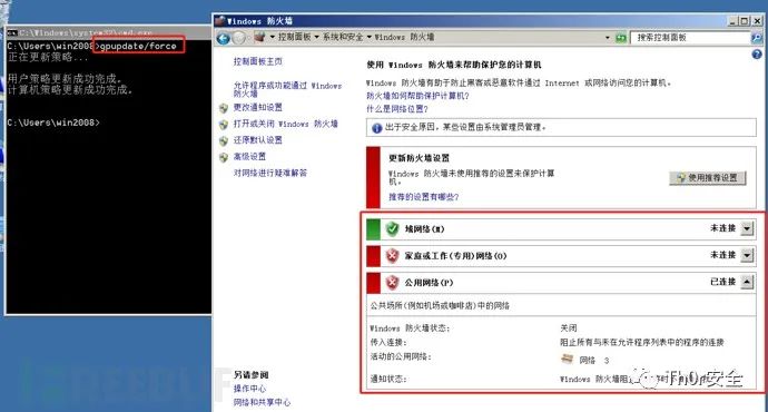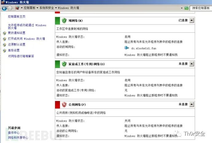 再次查看防火墙状态,发现变成了域控制器上的配置