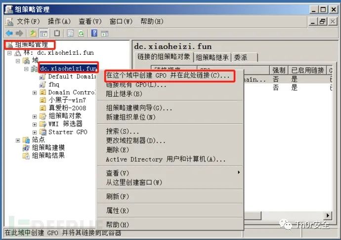 2.登录域控制器,操作:开始-管理工具-组策略管理-域-创建GPO链接
