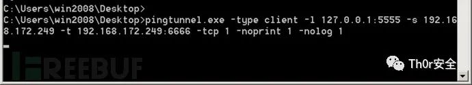 pingtunnel.exe -type client -l 127.0.0.1:5555 -s 192.168.172.249 -t 192.168.172.249:6666 -tcp 1 -noprint 1 -nolog 1