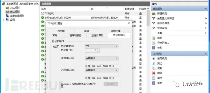 5.限制协议:在来到出站规则——右键 新建规则 ——端口——选择 TCP和所有端口——阻止连接——选择 域——名字:TCP协议控制