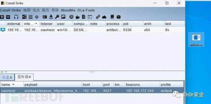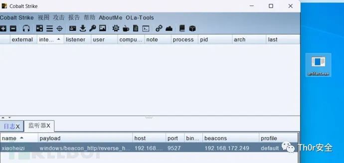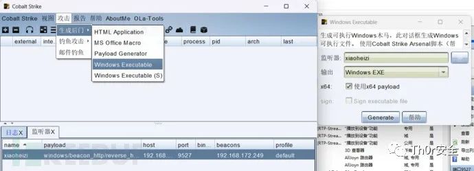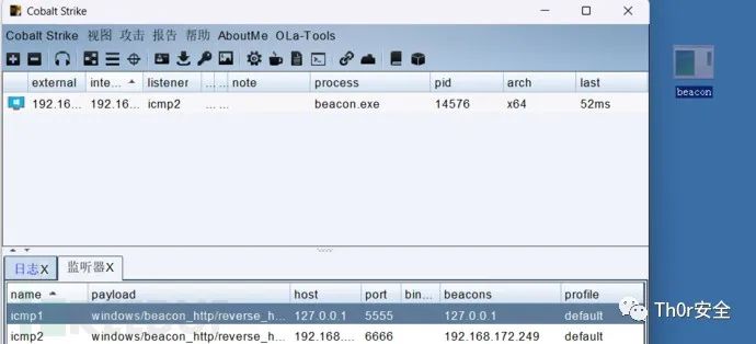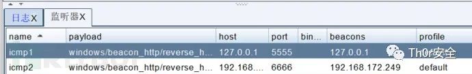 1.本机启动cs,新建两个监听器,分别为127.0.0.1:5555和本机ipv4地址:6666