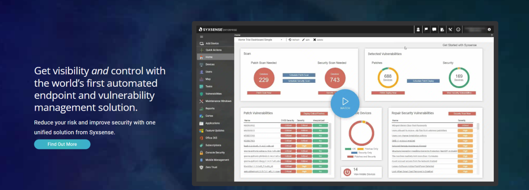 漏洞扫描与修复:Syxsense 可以实时检测设备中的漏洞并自动推送修复补丁,帮助企业减轻手动补丁管理的负担。