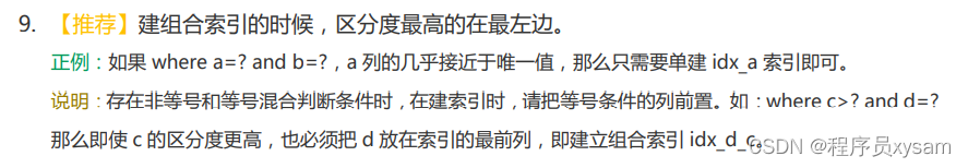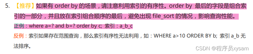 对于索引的顺序的建立,以及出现filesort的解决方案在阿里的开发手册中也有提到: