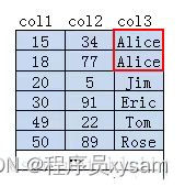 并根据col3 ,col2的顺序建立联合索引,此时联合索引树结构如图下所示: