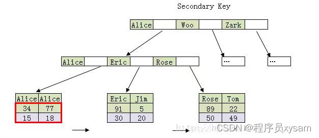 叶子结点中首先会根据col3的字符进行排序,若是col3相等,在col3相等的值里面再对col2进行排序,假如我们要查询where col3 like 'Eri%',就可以快速的定位查询到Eric。