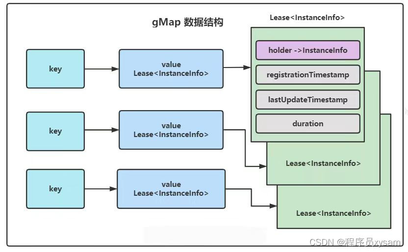 Lease是一个类,里面持有一个 instanceInfo 的 holder。这个 instanceInfo 就是注册过来的服务实例信息,包含 ip 地址,端口号等。