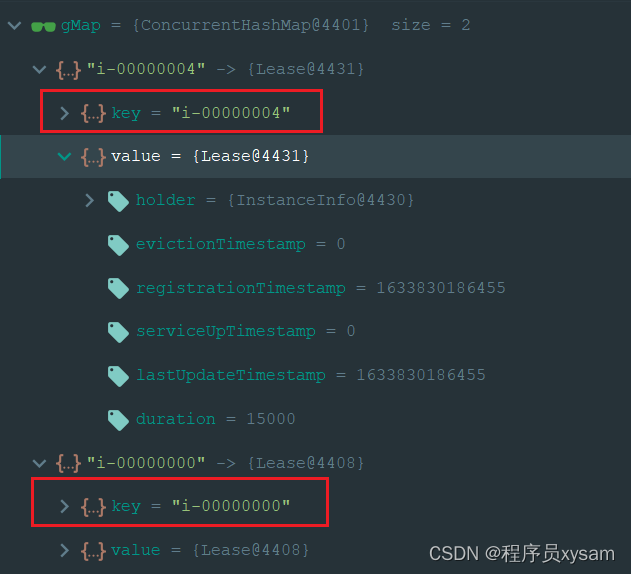 key就是一个 唯一 id,String 类型。值类似这种:i-00000004 -