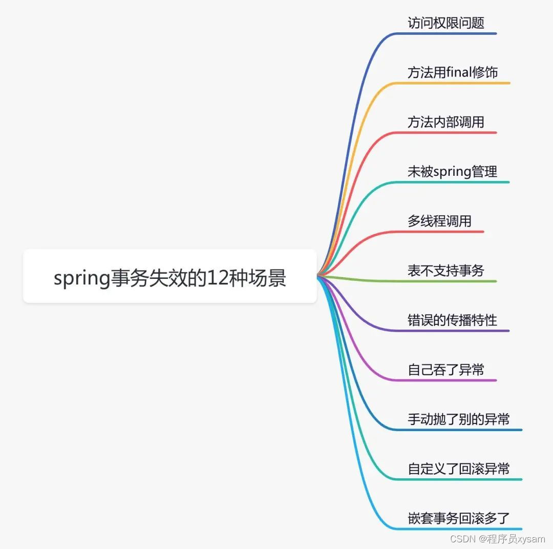 也就是说,如果我们自定义的事务方法(即目标方法),它的访问权限不是public,而是private、default或protected的话,spring则不会提供事务功能。