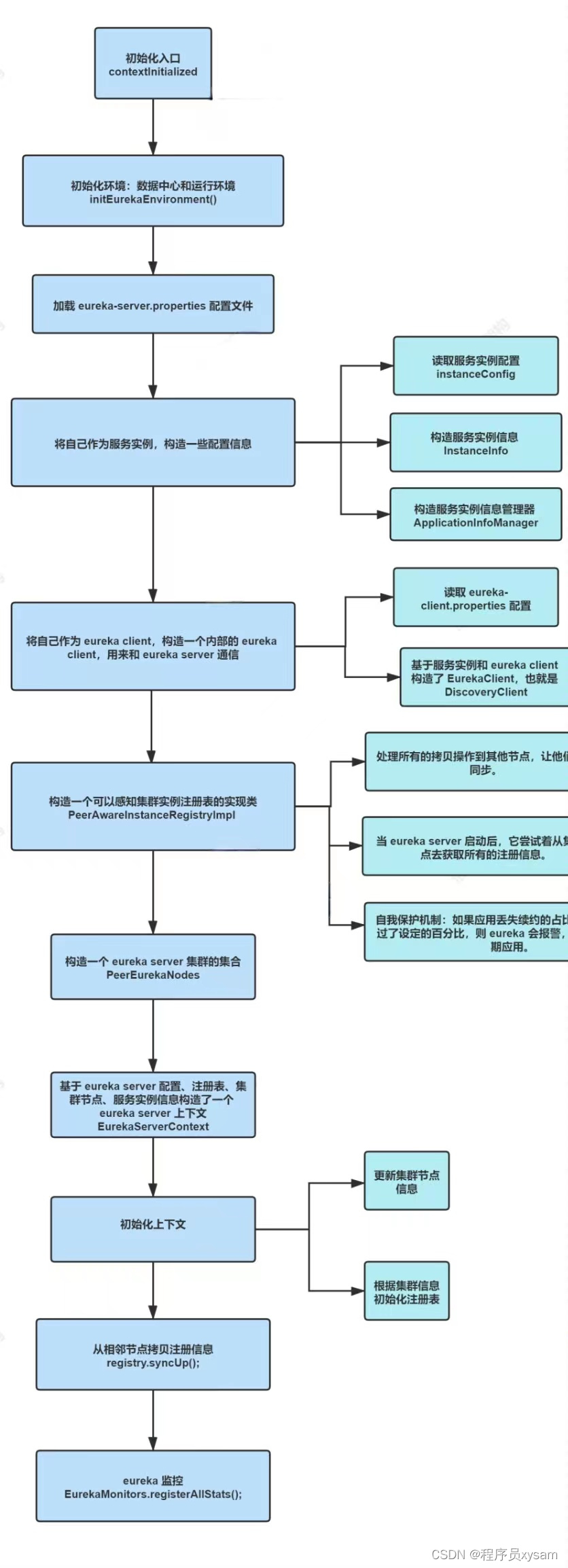 还是在 EurekaBootStrap.java 类中 contextInitialized 方法中,第二步调用了 initEurekaServerContext() 方法。