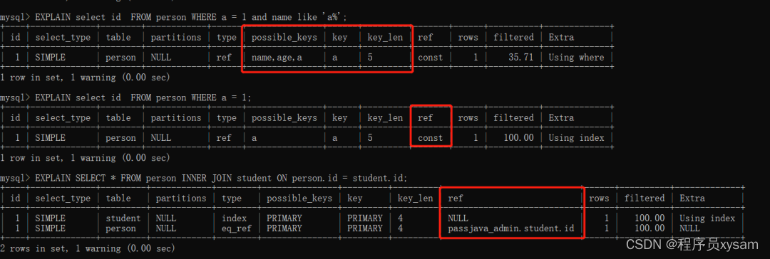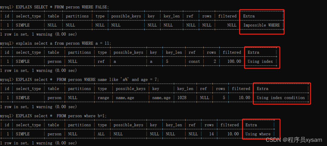 执行计划重要指标解释(id主键,name,age 联合索引, a 普通索引,b普通列):