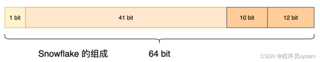 snowflake(雪花算法):Twitter 开源的分布式 id 生成算法,64 位的 long 型的 id,分为 4 部分: