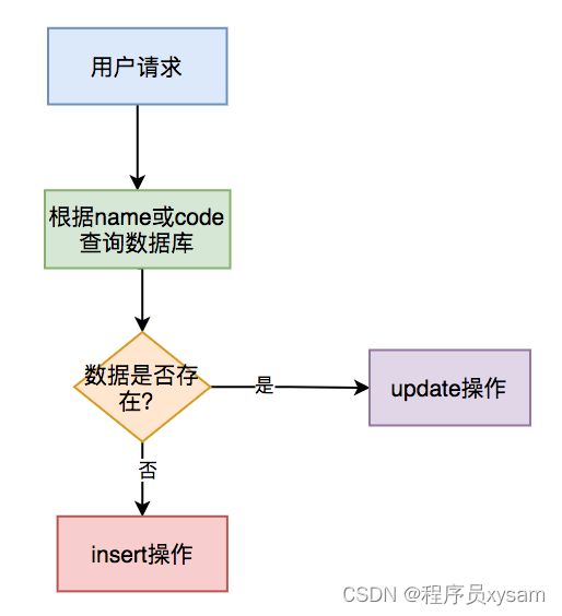 通常情况下,在保存数据的接口中,我们为了防止产生重复数据,一般会在insert前,先根据name或code字段select一下数据。如果该数据已存在,则执行update操作,如果不存在,才执行 insert操作。