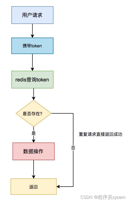 在redis中查询该token是否存在,如果不存在,说明是第一次请求,做则后续的数据操作。