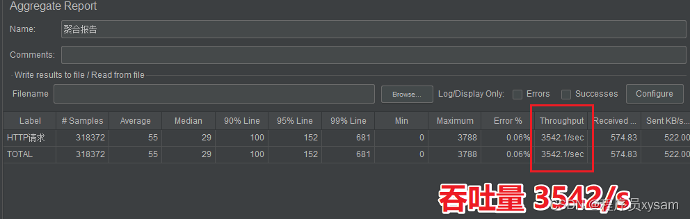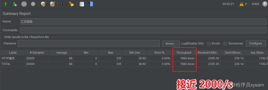可以看下执行结果,吞吐量在 2422 个每秒,还是比较高的。