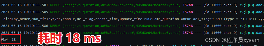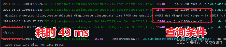 然后重启 passjava-question 服务,再次测试这个 api,耗时 43 ms
