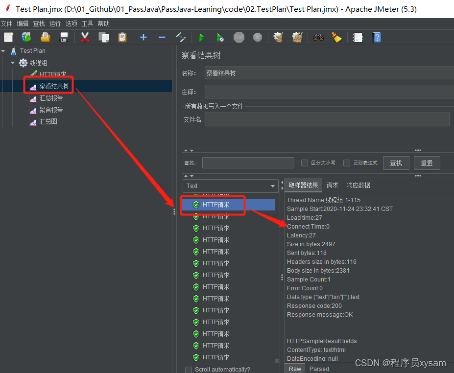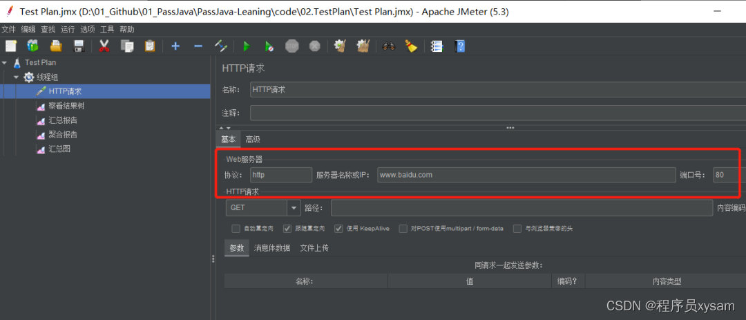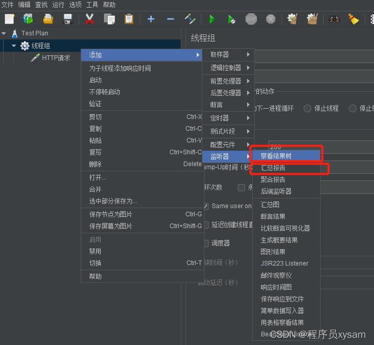 添加查看结果树、汇总报告和聚合报告。如下图所示: