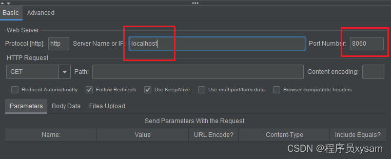 配置要测试的协议、服务器地址、端口号。配置信息如下: