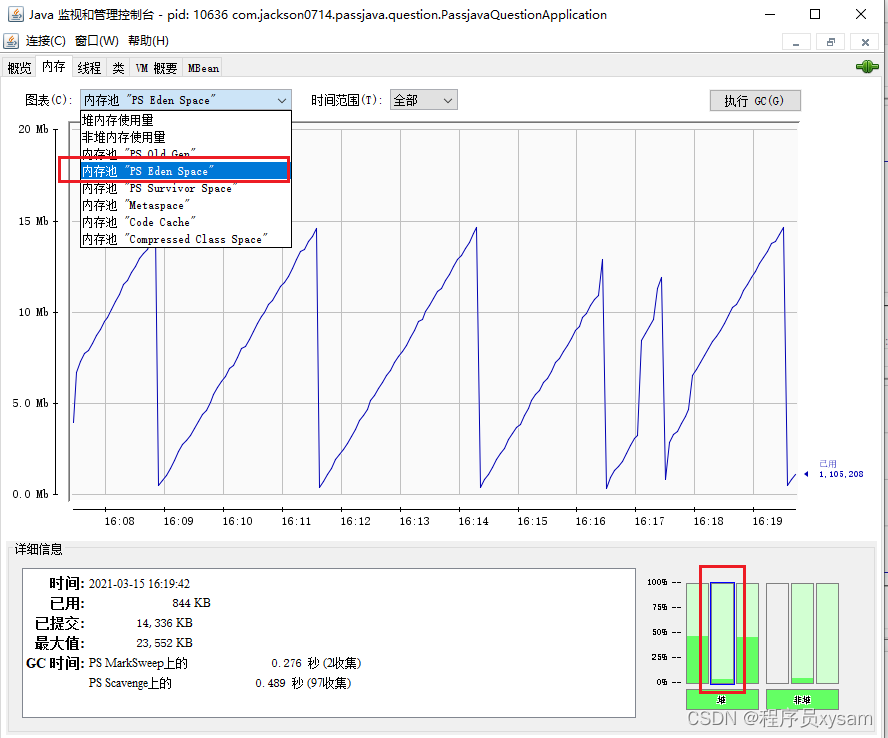 原因是 Eden 区的内存分配得太小了,只有 32 M,我们来调大一点。