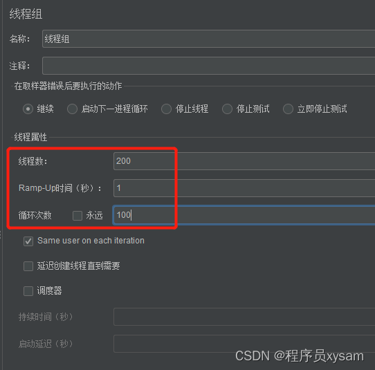 配置每秒发送 200 个请求,一直循环执行,直到手动停止压测。如下图所示: