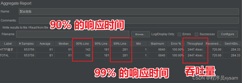 90%响应时间:将所有用户的响应时间进行升序排序,取 90 % 的位置。