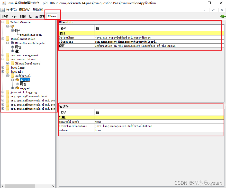接下来我们来看下 MBean 信息。对于 MBean,可能很多同学不知道是啥,下面做个解释: