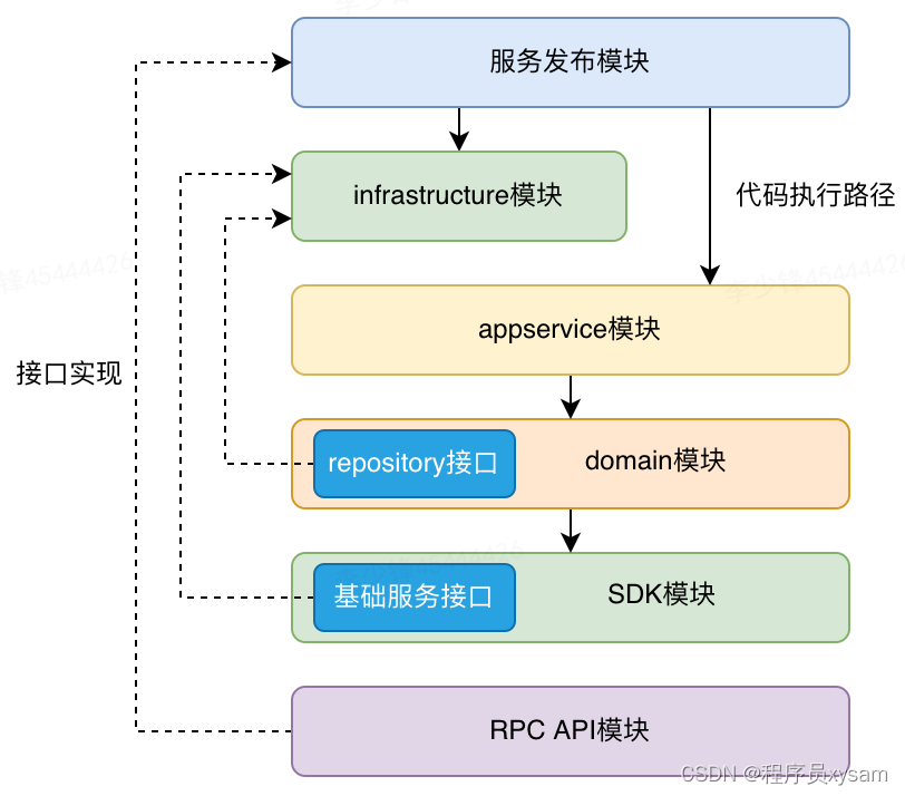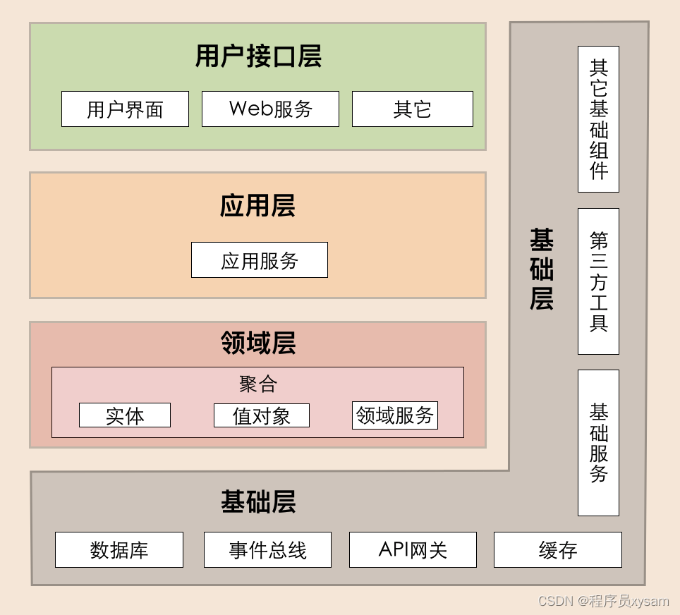 基础层是比较简单一层,不过这里还有个比较疑惑的问题:按照DDD的四层架构图去划分Maven模块,基础层是最上的一层,但是基础层也要包含基础组件供其他层使用,这时基础层应该是放到最下层,直接按照这样构建Maven模块会造成循环依赖。