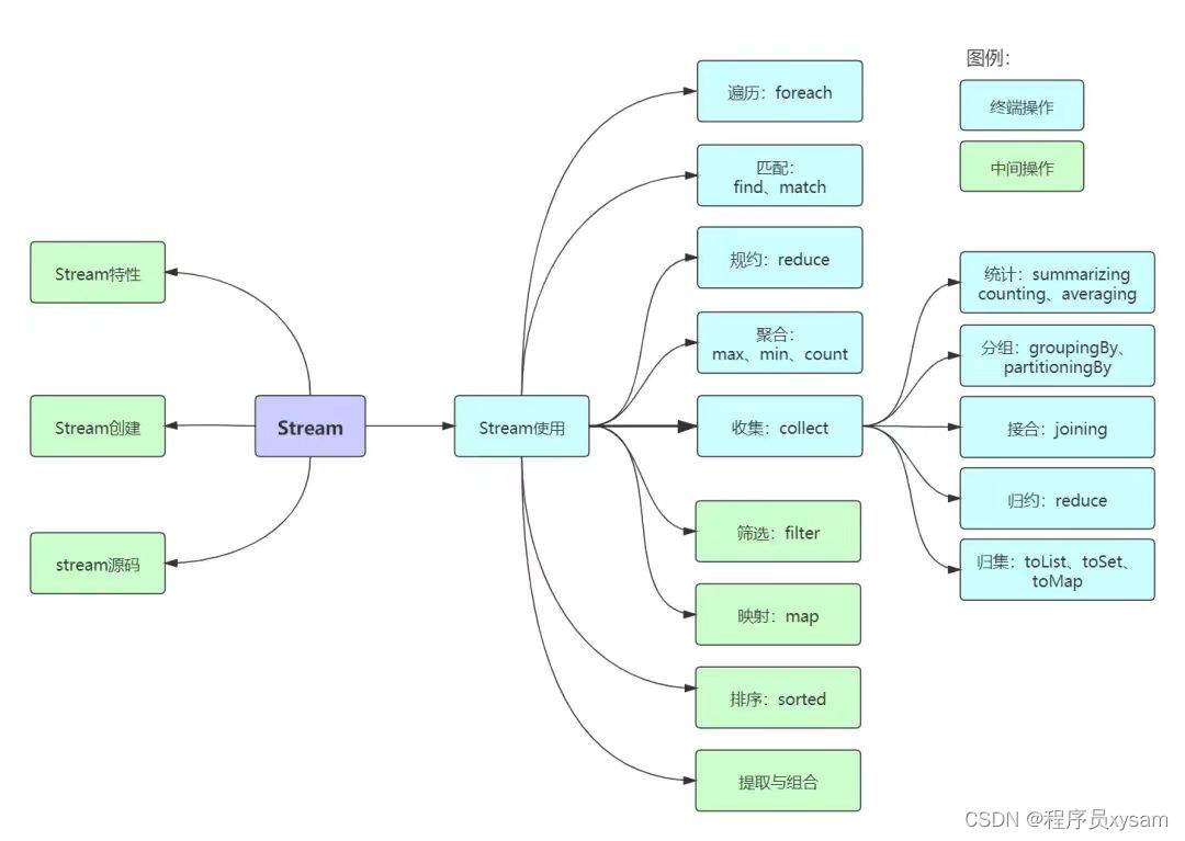 终端操作,每个流只能进行一次终端操作,终端操作结束后流无法再次使用。终端操作会产生一个新的集合或值。