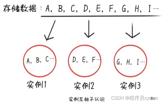 单指分区来讲,即将全部数据分散在多个Redis实例中,每个实例不需要关联,可以是完全独立的。
