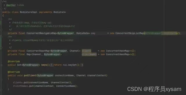 底层主树使用跳表ConcurrentSkipListMap实现,没用hash类map的原因是服务端是集群后,客户端可能使用hash路由,会导致服务端严重的hash冲突,性能大打折扣。