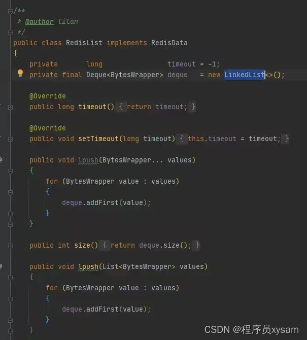 底层使用LinkedList的原因是LinkedList实现了多种接口,实现各种命令直接调用其现成实现的方法即可