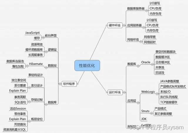 对于性能问题影响因素,简单来说包括了硬件环境,软件运行环境和软件程序三个方面的主要内容。下面分别再展开说明下。