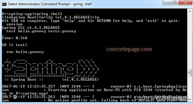 Spring boot CLI提供了test命令,我们可以用它来测试我们的spring boot应用程序。找到我们例子中使用的groovy类来测试hello.groovy。