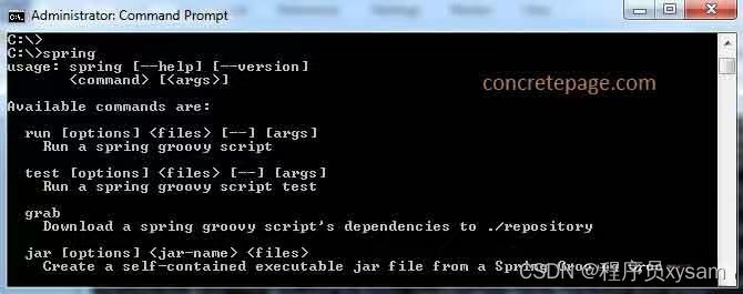 步骤3:现在我们将测试我们的安装。打开命令提示符并键入命令spring,我们将得到以下结果。