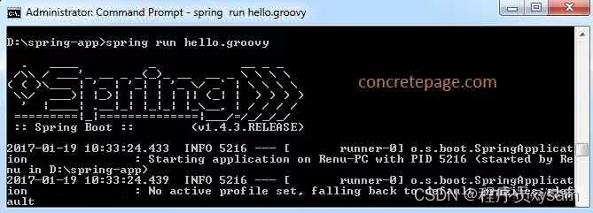 为了编译和运行Groovy源代码,Spring boot CLI提供了run命令,我们按以下方式调用。