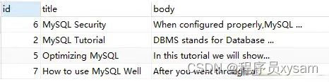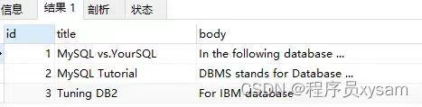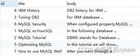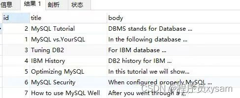 上述语句,查询的 'MySQL IBM' 没有 '+','-'的标识,代表 word 是可选的,如果出现,其相关性会更高