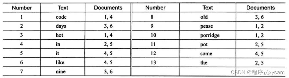 inverted file index:{单词,单词所在文档的id} -
